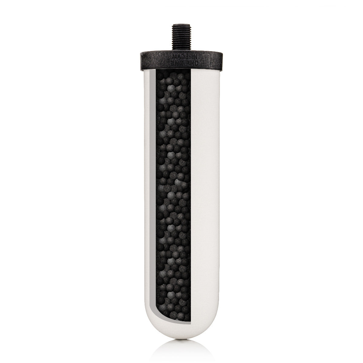 The bore of the filter contains granular activated carbon that aids in the reduction of chlorine and reduces organic chemicals along with improving the color, taste, and odor of the source water.